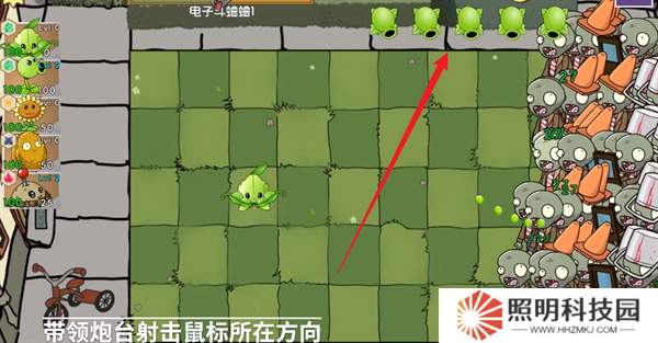 2、種植完成之后,上方將會出現(xiàn)多個炮臺,炮臺能夠發(fā)射炮彈來攻擊僵尸。