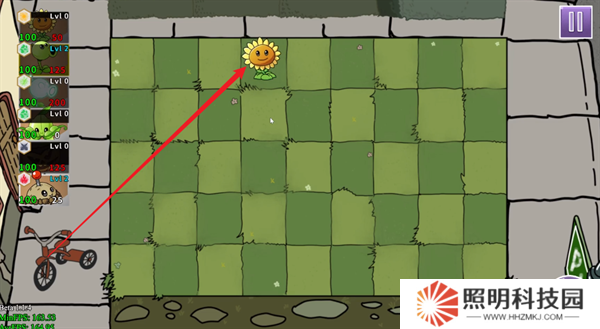 1、玩家們進入關卡之后,首先需要種植向日葵來生產陽光,只有擁有足夠的陽光才能夠種植各種植物。