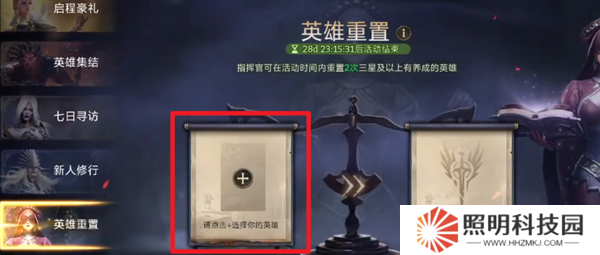 3、進(jìn)入英雄重置的界面之后,點擊加號就能夠選擇自己的英雄進(jìn)行重置了。
