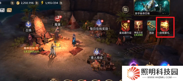 1、玩家們進(jìn)入游戲之后,首先需要點擊右上角的啟程豪禮。