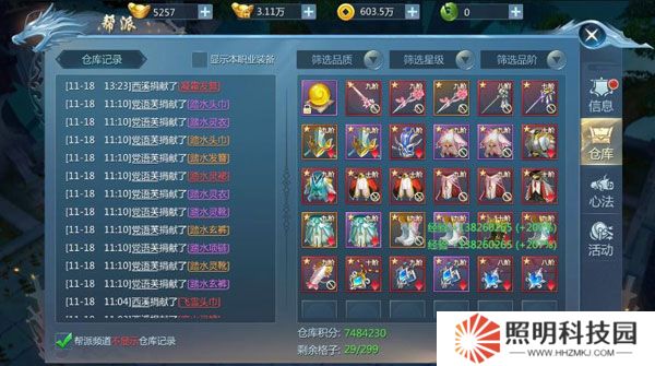 2、在倉庫之中會存在著許多成員捐獻(xiàn)的裝備,你可以消耗積分來進(jìn)行換取,或者捐獻(xiàn)自己不需要的裝備來換取積分。