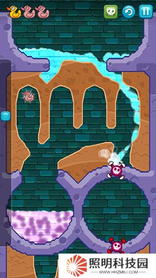 4、在關(guān)卡之中你需要通過引流來(lái)讓水流最終可以流到小鱷魚的浴室里面,以此達(dá)成洗澡的目標(biāo)。