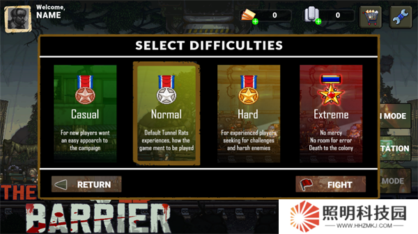 3、然后進(jìn)行難度的選擇,不同的難度之下你所面對(duì)的敵人也都是不盡相同的。
