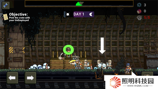 4、左下角的按鍵能夠控制角色移動(dòng),右邊這個(gè)按鍵增加后勤士兵。