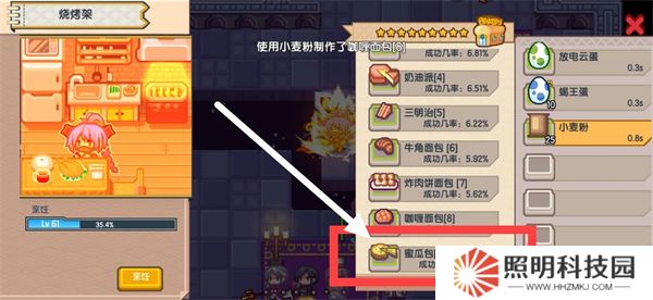 之后便是使用燒烤架往下翻,做這個九級的蜜瓜包幾率非常高,只需要九級的,其他的都可以扔掉。