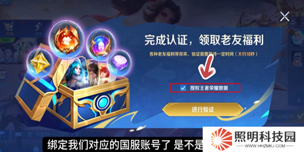 2、進(jìn)入到游戲后,點(diǎn)擊勾選授權(quán)王者榮耀數(shù)據(jù),然后進(jìn)行驗(yàn)證。