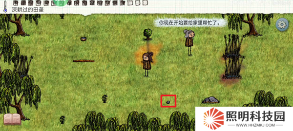 5、點(diǎn)擊巖石來(lái)進(jìn)行交互,將手中的石頭磨尖。