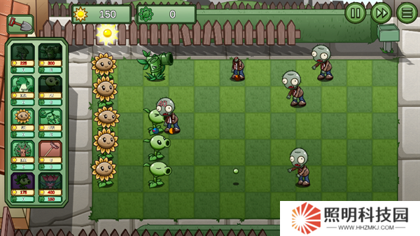 3、進(jìn)入到關(guān)卡后,場景內(nèi)會(huì)不斷的出現(xiàn)僵尸,玩家們需要種植植物進(jìn)行對戰(zhàn)。