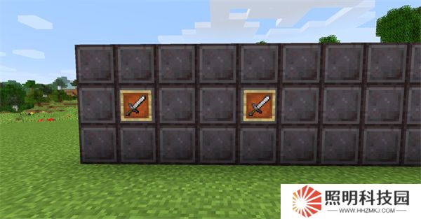11、在普通方塊上放置一個(gè)展示框,這個(gè)展示框是作為內(nèi)部的輸出密碼,外部的展示框道具方向,需要跟內(nèi)部的一致,密碼門才會(huì)打開。