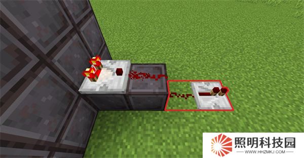 12、在內(nèi)部展示框的背面,放置一個(gè)紅石比較器,然后用紅石粉進(jìn)行連接。