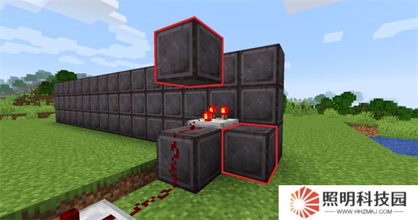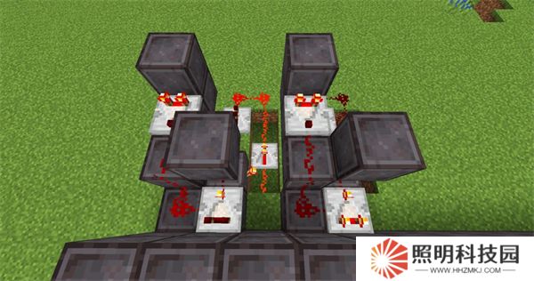 14、對(duì)應(yīng)外部的密碼鎖個(gè)數(shù),只需要重復(fù)建造我們上述步驟兩次即可,但是要注意每個(gè)紅石裝置,要距離足夠遠(yuǎn)的位置,否則線路會(huì)短路。