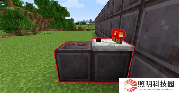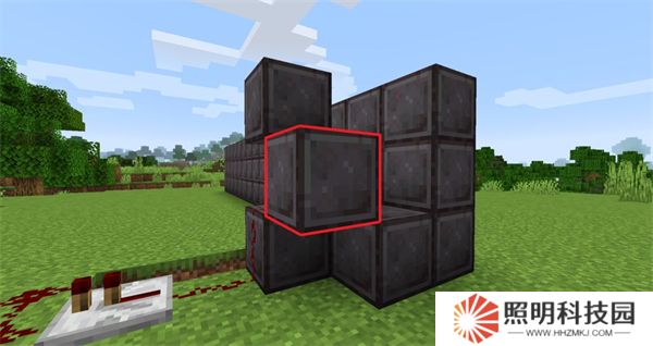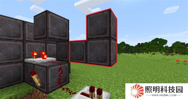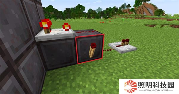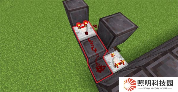 5、在第二個(gè)方塊的側(cè)面放置紅石火把。