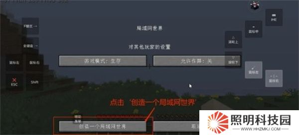 5、最后玩家們點(diǎn)擊下方創(chuàng)建一個(gè)區(qū)域網(wǎng)世界后,玩家們通過(guò)搜索局域網(wǎng)即可進(jìn)入一起游玩體驗(yàn)。