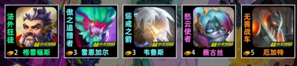 10、【莫甘娜】-9法強(qiáng),【拉亞斯特】-6雙抗,【賽娜】-8%攻擊力,【古拉加斯】-50生命值,【薇古絲】-9%暴擊率,【雷克頓】-6%攻速,【紋章】-4%吸血。