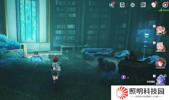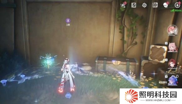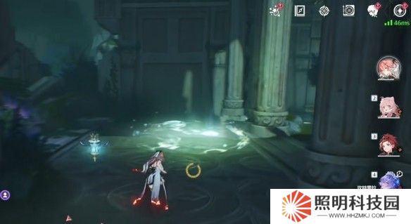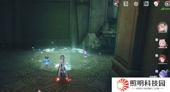 10、沿著左側(cè)樓梯向上,站在發(fā)光點(diǎn)處切換場(chǎng)景,并進(jìn)行交互。