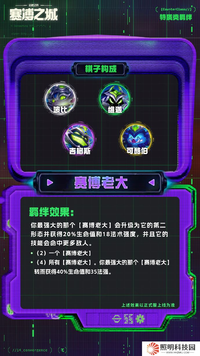 你最強(qiáng)大的那個【賽博老大】會升級為它的第二形態(tài)并獲得20%生命值和18法術(shù)強(qiáng)度,并且它的技能會命中更多敵人。