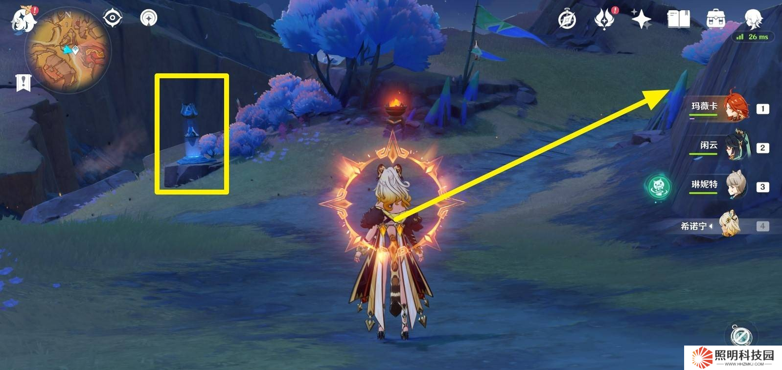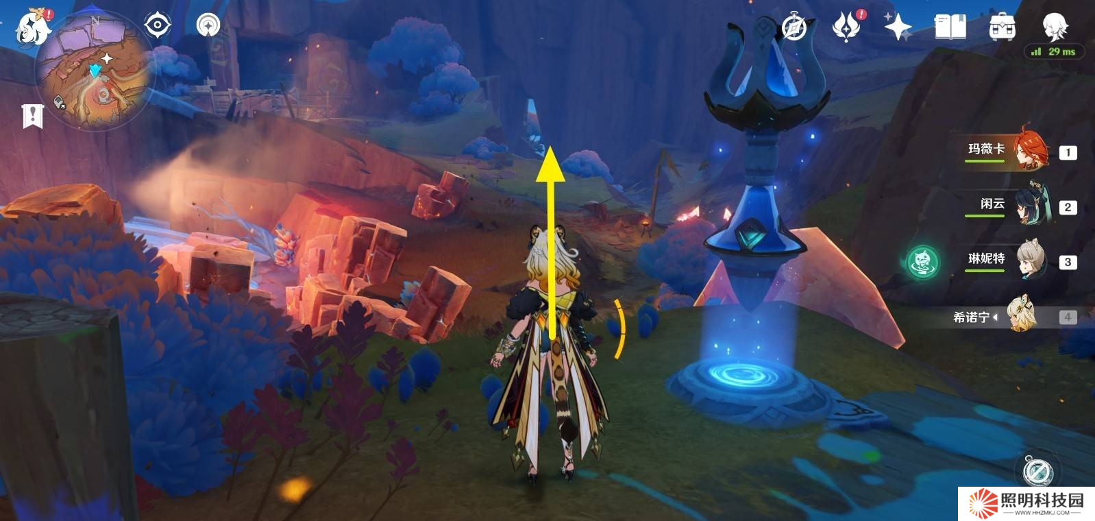 4、穿過(guò)石頭障礙后,繼續(xù)沿主路走,在右側(cè)可以看到一個(gè)新的傳送錨點(diǎn),靠近后激活它。