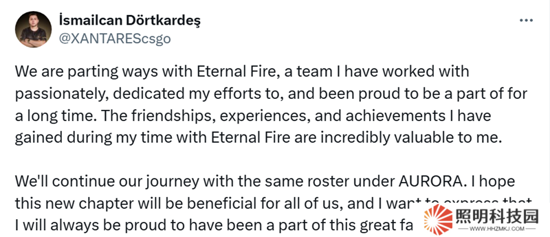 XANTARES:我們即將與Eternal Fire戰(zhàn)隊(duì)分道揚(yáng)鑣,長久以來,我一直滿懷熱忱地為這支戰(zhàn)隊(duì)工作,全身心投入其中,并且曾為能成為戰(zhàn)隊(duì)的一員而深感自豪。在為EF戰(zhàn)隊(duì)效力期間,我收獲的友情、經(jīng)歷以及取得的成就,對我而言無比珍貴。
