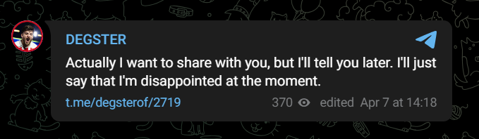 Abdul Gasanov | degster在賽后也寫道:“我想和你們分享點東西,但稍后我會再說的。只能說當前我很失望?!?/p>