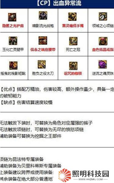 2.然后第二套是異常出血流量,可以看到隱光肩墊,暗影流光戰(zhàn)袍,黑靈纏繞手鐲,領(lǐng)域之心項(xiàng)鏈,玉華亡靈護(hù)腿甲,信仰呼吸帶,死亡之冠,血色水晶切斷,閃爍鬼影短靴,勝敗之劍,詛咒之鐐銬,逆流之魂珠。