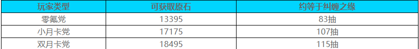 3、小月卡黨與雙月卡黨多出的原石,主要來(lái)源于「空月祝?!?,每日90原石,長(zhǎng)期穩(wěn)定。