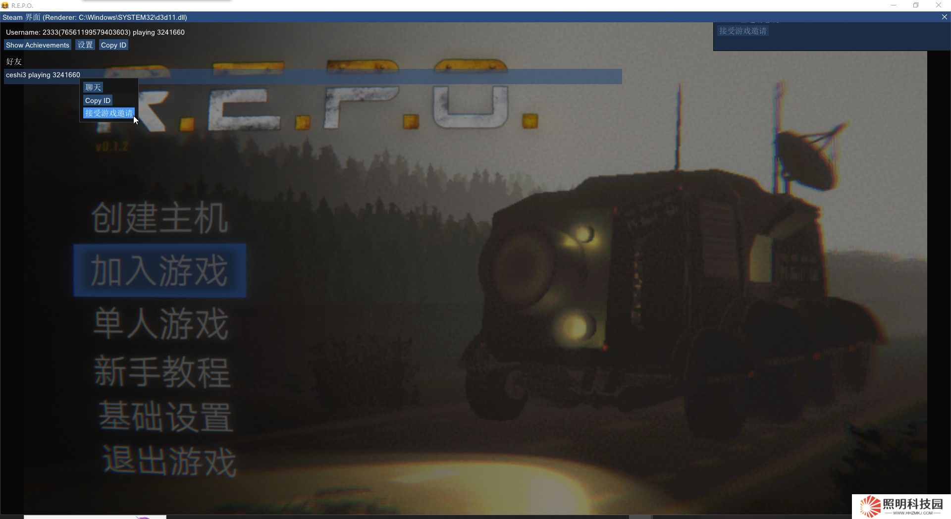 加主機:右上角看到主機的邀請——加入游戲——在呼出的聯機框里面找到主機,右鍵接受游戲邀請——等待主機開始游戲。
