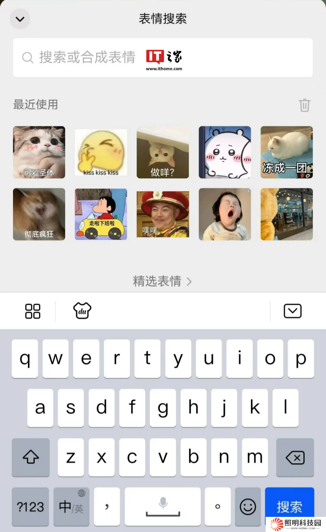 點擊表情最左側(cè)的“搜索”圖標(biāo),搜索框下方會顯示最近使用的表情。