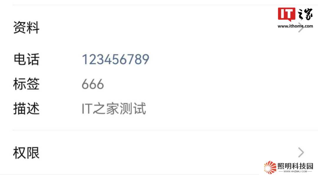 而在新版本中,這倆選項重新命名,變更為“資料”和“權(quán)限”;與此同時,原本位于“發(fā)消息”上方的“更多信息”選項消失不見。
