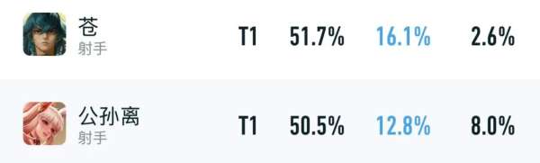 比如,蒼和公孫離的巔峰賽數(shù)據(jù)就很穩(wěn)定,畢竟他倆是技能型射手,可以吃滿攻速裝提升Ad的紅利,前中期傷害會高不少。