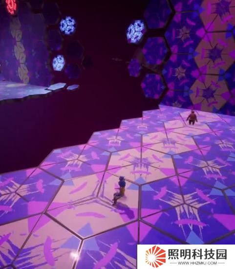 萬花筒需要玩家看向兩邊墻壁上有顏色的格子,然后通過在地板上踩相同顏色的格子進行連線就可以謎題了,要注意格子的連線并不是直線,可以是曲線。