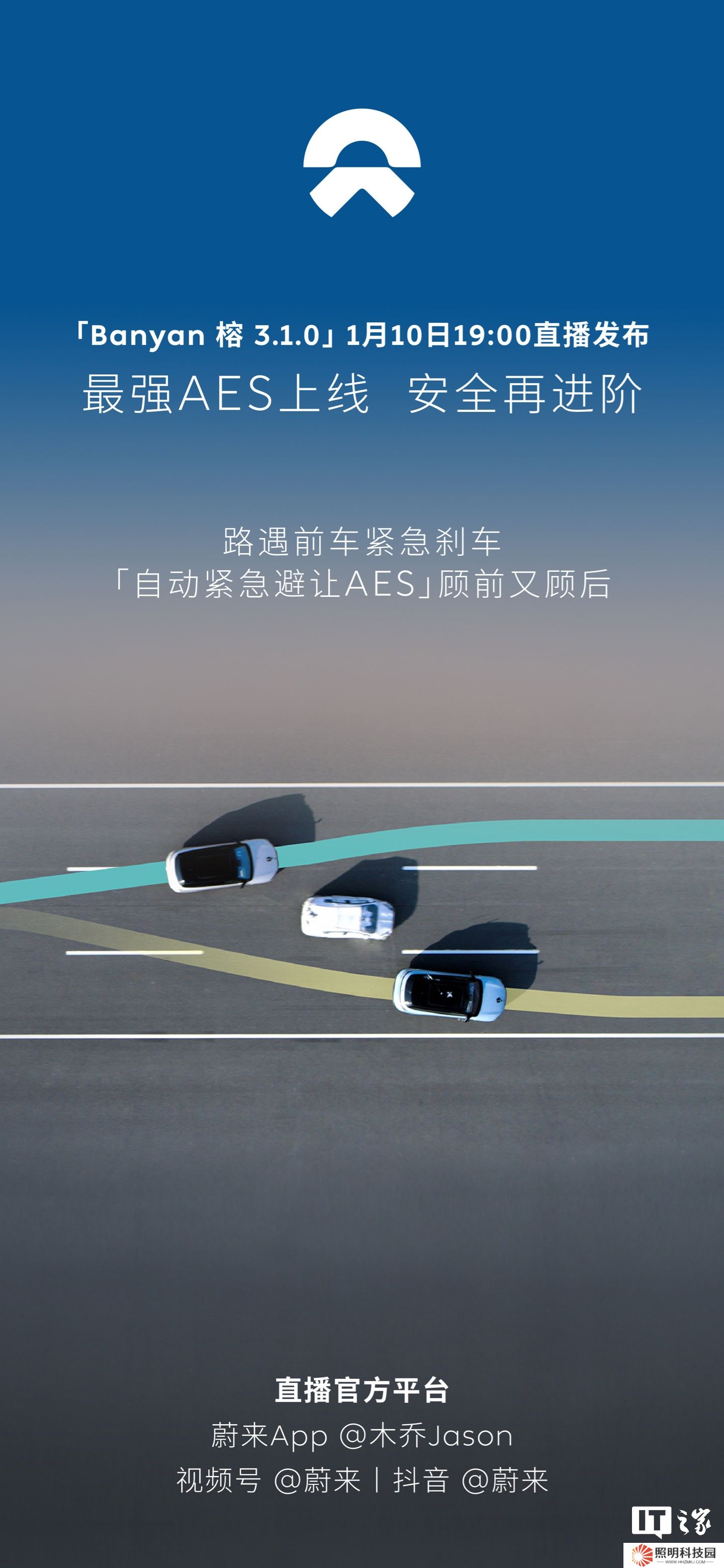 本站 1 月 9 日消息,蔚來官方今日發(fā)文宣布,蔚來智能系統(tǒng)「Banyan 榕 3.1.0」版本將于 1 月 10 日(明日) 19:00 直播發(fā)布,將提供超百項功能新增及優(yōu)化。